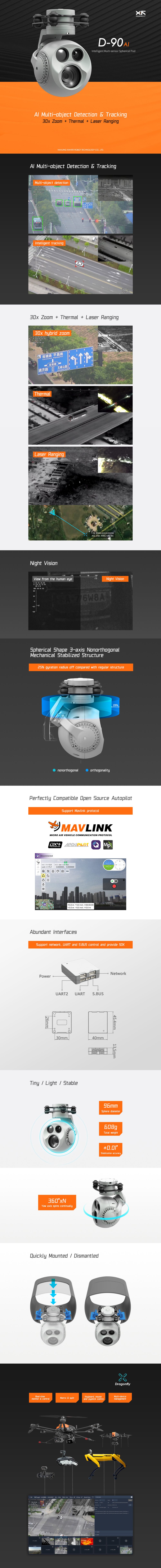 - بفضل الخوارزميات التكميلية Dual-IMU مع التحكم في درجة الحرارة IMU ودمج AHRS للحامل، يوفر D-90AI دقة تثبيت عند ±0.01 درجة.